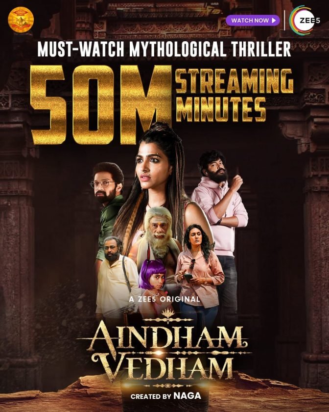 ZEE5 தளத்தில் சமீபத்தில் வெளியிடப்பட்ட ஐந்தாம் வேதம் சீரிஸ், பெரும் வரவேற்பைப் பெற்று வெற்றியடைந்துள்ளது. வெளியான குறுகிய காலத்தில் ZEE5 இல் டிஜிட்டல் பிரீமியர் மூலம், 50 மில்லியன் பார்வையாளர் நிமிடங்களைக் கடந்து, புதிய சாதனையைப் படைத்துள்ளது. கல்ட் கிளாசிக் மர்மதேசம் புகழ் இயக்குநர் நாகா இயக்கத்தில், அபிராமி மீடியா ஒர்க்ஸ் தயாரித்துள்ள இந்த சீரிஸில், சாய் தன்ஷிகா முதன்மைப் பாத்திரத்தில் நடித்துள்ளார். சந்தோஷ் பிரதாப், விவேக் ராஜகோபால், ஒய் ஜீ மகேந்திரா, கிரிஷா குருப், ராம்ஜி, தேவதர்ஷினி, மேத்யூ வர்கீஸ், மற்றும் பொன்வண்ணன் உட்பட பல முன்னணி நட்சத்திரங்கள் இணைந்து நடித்துள்ளனர்.