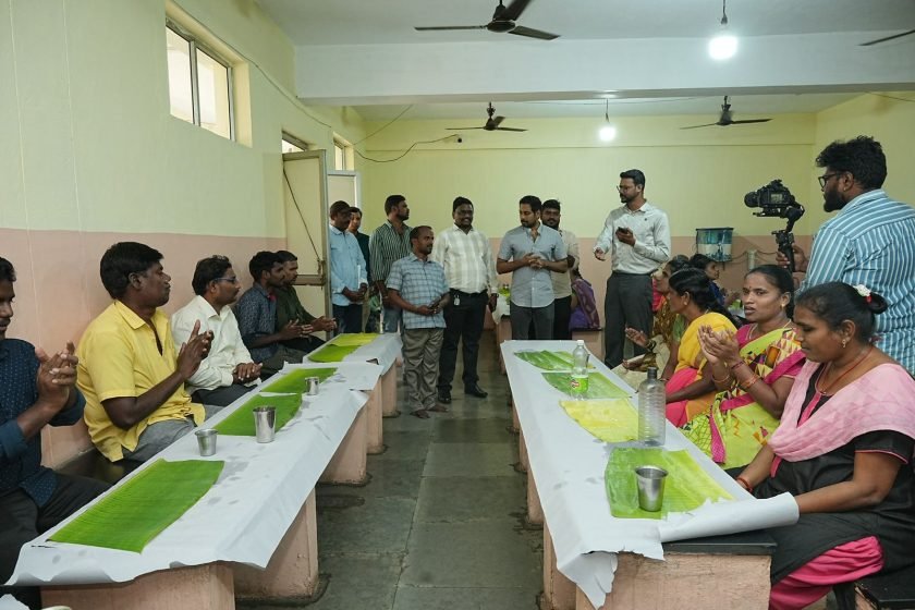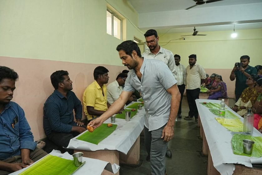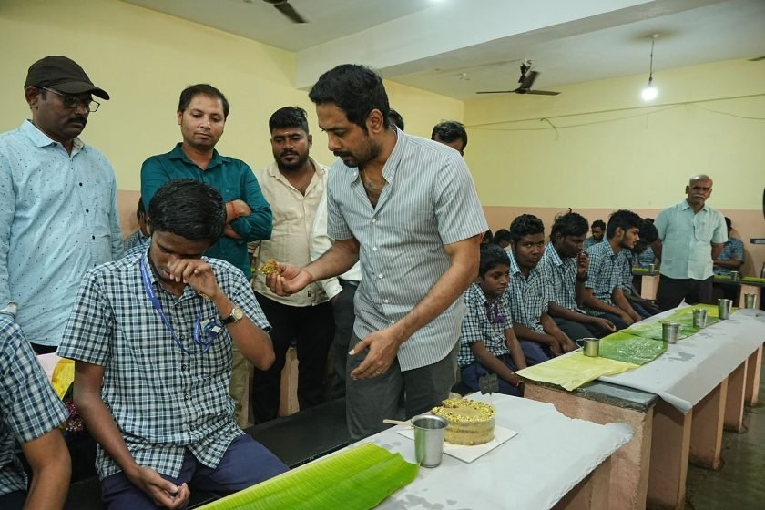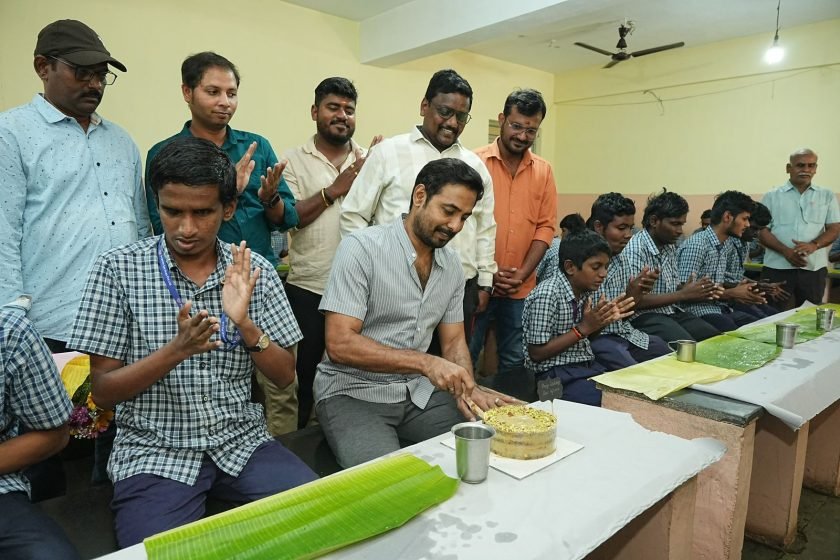 முன்னதாக அவருடைய பிறந்தநாளை பூந்தமல்லியில் உள்ள பார்வைத்திறன் குன்றியோர் பள்ளியில் கேக் வெட்டியும், விருந்து பரிமாறியும் கொண்டாடப்பட்டது. அதனைத் தொடர்ந்து படத்தின் தலைப்பினை பார்வைத்திறன் குன்றிய வயதானவர்கள் மற்றும் மாணவர்கள் முன்னிலையில் ஆரி அர்ஜூனன் வெளியிட்டார்.