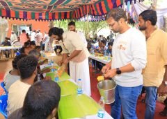 இது குறித்து பேசிய சண்முகபாண்டியன், “இயன்றதை செய்வோம் இல்லாதவர்க்கே என்பதை தனது வாழ்நாள் லட்சியமாக கொண்டு அனைவருக்கும் அள்ளி கொடுத்தவர் எனது தந்தையார். அவரது அடிச்சுவற்றை பின்பற்றி ‘கொம்புசீவி’ படம் உருவாக கடுமையாக உழைத்த குழுவினருக்கு என்னால் முடிந்த சிறிய அன்பளிப்பாக இன்று உணவையும், உடைகளையும் பகிர்ந்து கொண்டேன்,” என்றார்.