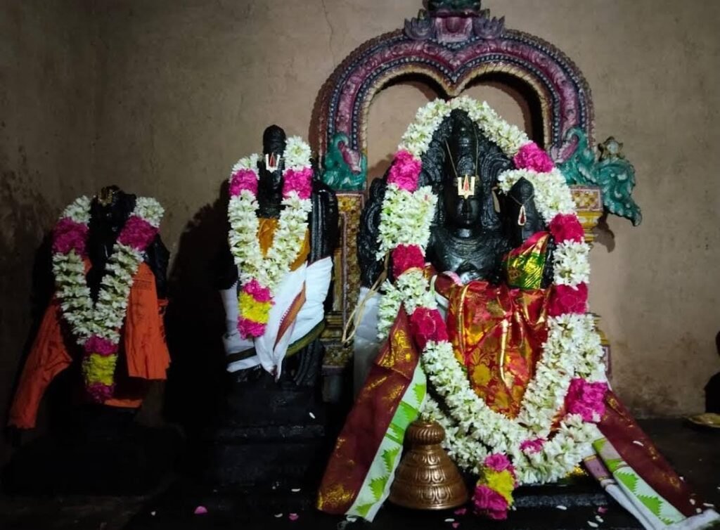 அபூர்வமான சாளக்கிராம கல்லினால் ஸ்வாமி சிலைகளை வடித்து, இக்கோவிலை நிர்மாணித்தார்.