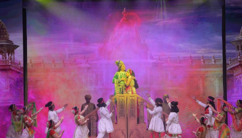 ‘ராஜாதிராஜ் யாத்ரா’ இசை, நடனம் மற்றும் கதைசொல்லல் மூலம் கிருஷ்ணரின் வாழ்க்கை மற்றும் தெய்வீக பெருமைகளை முன்வைக்கும் பெரிய அளவிலான கலைப் படைப்பாகும். கோகுலத்தின் குறும்பு குழந்தை முதல் ஞானமுள்ள தத்துவஞானி மற்றும் துவாரகையின் மாமன்னர் என இந்த நிகழ்ச்சி கிருஷ்ணரை பல வடிவங்களில் சித்தரிக்கிறது. பகவான் ஸ்ரீ கிருஷ்ணரின் கருணை, தைரியம் மற்றும் போதனைகளை இந்த நாடகம் எடுத்துரைக்கிறது. மறக்கமுடியாத கலாச்சார அனுபவமாக இது வடிவமைக்கப்பட்டுள்ளது.