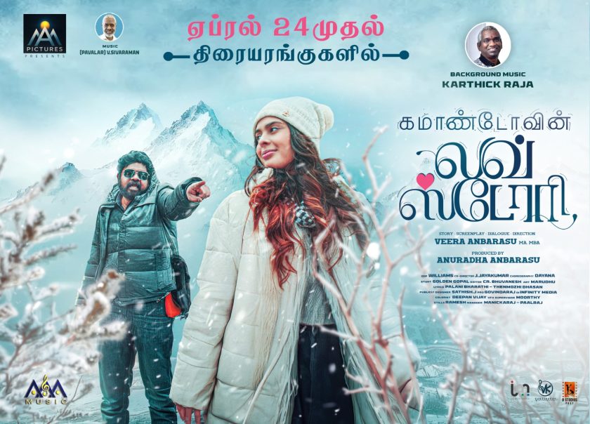 ஏஏஏ பிக்சர்ஸ் சார்பில் அனுராதா அன்பரசு தயாரித்துள்ள திரைப்படம் “கமாண்டோவின் லவ் ஸ்டோரி”. வீர அன்பரசு கதையின் நாயகனாக நடித்து, கதை, திரைக்கதை, வசனம் எழுதி இயக்கியுள்ளார். மும்பை அழகி ஏஞ்சல் நாயகியாக அறிமுகமாகிறார். ரோபோ சங்கர், பப்லு பிருத்திவிராஜ், பேரரசு, அரவிந்தராஜ், வாழை ஜானகி, மதுமிதா, விஜய் டிவி முல்லை, புதுப்பட்டு சக்திவேல், சிரஞ்சீவி, சூப்பர்குட் சுப்பிரமணி, பாய்ஸ் ராஜன், ஓஏகே சுந்தர், துரைபாண்டியன், ஸ்ரீதேவி, பூர்ணிமா, சுஷ்மிதா, நிஷா இவர்களுடன் ஆகாஷ் முத்து என்ற புதுமுகம் அறிமுகம் ஆகிறார்.