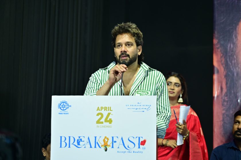 ‘செல்லமே’, ‘ஆனந்த தாண்டவம்’ படங்களை இயக்கிய காந்தி கிருஷ்ணா இயக்கத்தில், கிரிஜா வரதராஜ் தயாரிப்பில், நடிகர்கள் ராணவ், ரோஸ்மின், சம்பத்குமார், கஸ்தூரி, கிருத்திக் மோகன் உள்ளிட்டப் பலர் நடித்திருக்கும் திரைப்படம் ‘பிரேக்ஃபாஸ்ட்’. இந்த மாதம் 24 ஆம் தேதி வெளியாக இருக்கும் இந்தப் படத்தின் இசை வெளியீட்டு விழா நடைபெற்றது.