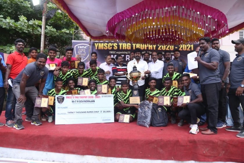 சென்னை பெரம்பூரில் 28 வருடங்களாக பெருளாதாரத்தில் பின்தங்கிய இளைய சமுதாயத்தினருக்கு இலவசமாக கல்வியோடுக்கூடிய கால்பந்தாட்டாத்தை அளித்து வெற்றிகரமாக இயங்கிவரும் YMSC நல அறக்கட்டளையின் கீழான YMSC கால்பந்தாட்டக் குழுவினால் இளம் வீரர்களின் திறமைகளை ஊக்குவிக்கும் வகையில் 17 வயதுக்குட்பட்டோருக்கான மாநில அளவிலான TRG நினைவு கால்பந்தாட்டப் போட்டி 19-02-2021 முதல் 21-02-2021 வரை 3 நாட்களாக சென்னை பேசின் பாலம் தொன் போஸ்கோ விளையாட்டு மைதானத்தில் நடைப்பெற்றது. இந்த போட்டியில் தமிழகத்தைச் சேர்ந்த 16 அணிகள் பல்வேறு மாவட்டங்களிலிருந்து பங்கேற்றார்கள். இந்த போட்டியில் முதல் இடத்தைப் பிடித்த YMSC கால்பந்தாட்டக்குழுவுக்கு விநியோஸ்தகரும், தயாரிப்பாளரும் நடிகருமான திரு R K சுரேஷ் அவர்களும், KRV குருப் ஃஆப் கம்பெனியின் நிர்வாக இயக்குநர் திரு K R வெங்கடேஷ் அவர்களும் மற்றும் YMSC-ன் நிர்வாகி திரு J இளங்கோவன் அவர்களும் பரிசுகளை வழங்கினார்கள்.
